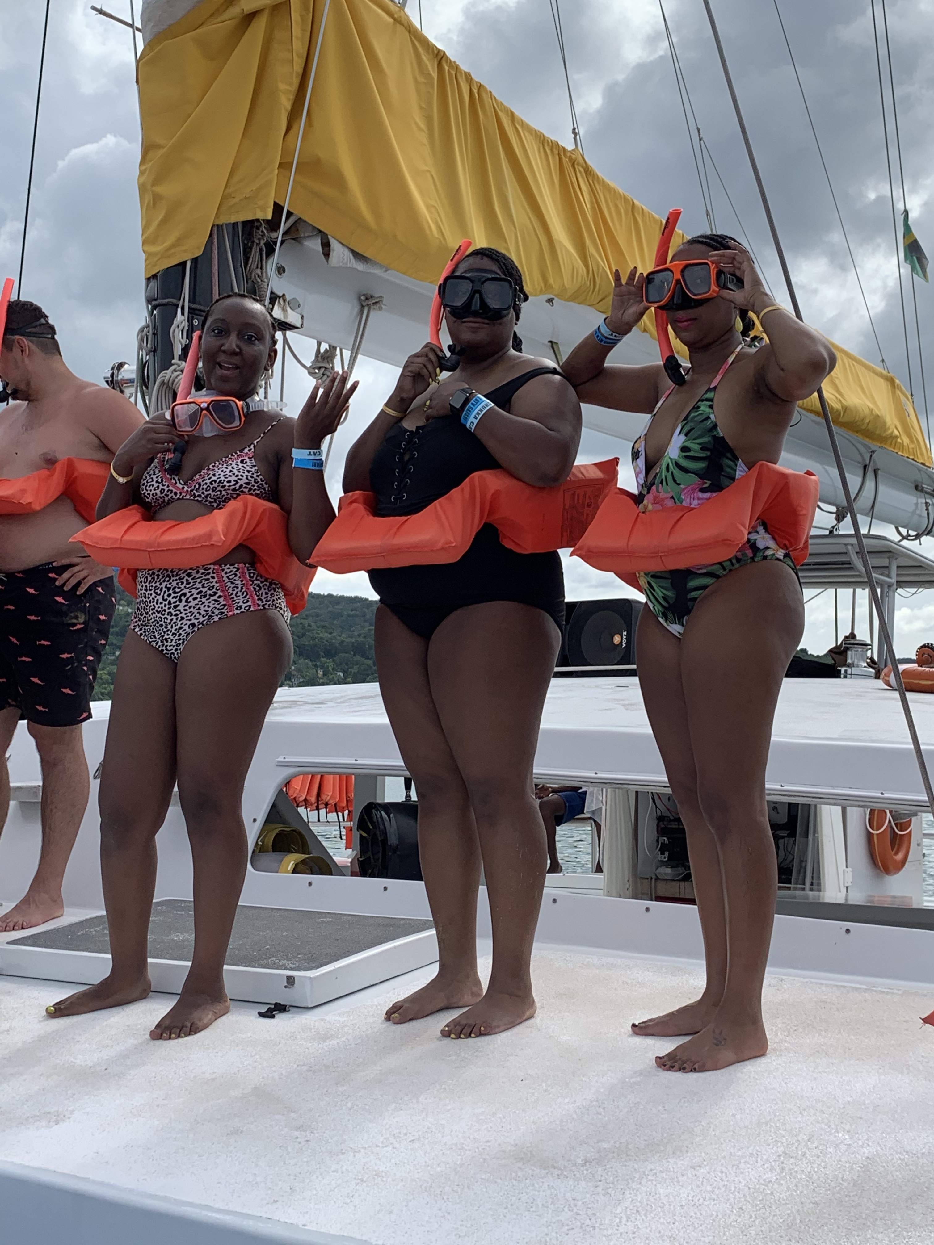 Almost sad from it being our next to last day, we had no idea what we were going to do. So being the girls that we are, we headed to the beach for a photo shoot. You couldn’t tell us we weren’t models that day! We even played a frisbee game with other friendly people to win a bottle of Jamaican Appleton rum. My throw was off for some reason so I didn’t win…or even place for that matter. After a few fruity drinks and laughs with the bartender, we decided to go sailing. We took 2 boats out with guides and were able to get some great pictures of the resort as a whole. We even got to get off on a sand dune to take a group picture in the middle of the ocean. The wind blew through our hair as we enjoyed the breath-taking views and each other’s company. When we were finished, we went back to shots to celebrate a successful girls trip by the poolside.